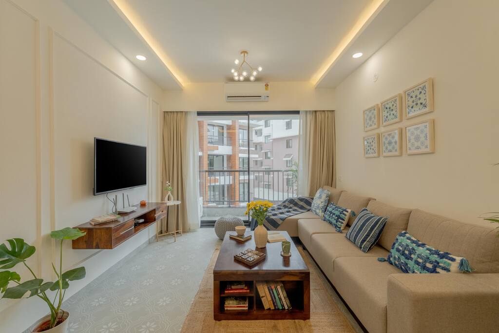 Amenities for a Comfortable Stay Designed for convenience, the apartment is equipped with: A fully functional kitchen A flat-screen TV High-speed Wi-Fi A washing machine and drying stand An inverter backup offering 3-4 hours of power for fans, lights, Wi-Fi, and charging (no generator backup) We provide a mattress as sleeping arrangement for the extra guest. We have designed parking space for your apartment in the society Prime Location & Nearby Attractions Ideally positioned in Candolim, the apartment offers quick access to key attractions: Beaches: Candolim Beach (1.6Kms), Calangute Beach (5.5Kms) Dining Options: Cantare (15 minutes), The Lazy Goose (5 minutes), Tereza Beach House By Sly Granny (10 minutes), Ritz (18 minutes), Starbucks (7 minutes) Casinos: Deltin Jetty (13 minutes), Casino Pride (25 minutes) Supermarkets: 1) Newton's supermarket (2kms) 2)Spaceship International Supermarket (2Kms) Other Key Locations: Panjim City Center (28 minutes), Mopa Airport (57 minutes), Dabolim Airport (55 minutes) Housekeeping & Services Daily housekeeping services are available from 10:00 AM to 6:00 PM, with fresh towels and linens changed on the 3rd night of the stay