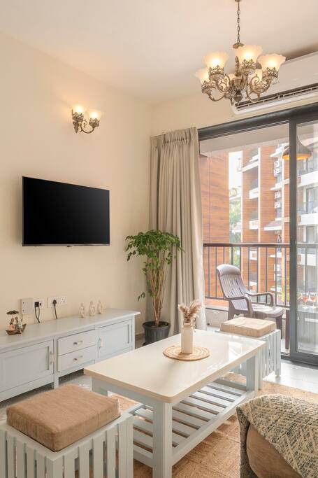"Nestled in Candolim Village, this cozy apartment is: 5-minute drive from Candolim Beach Ideal for couples/small families Well-furnished bedroom with private balcony Modern amenities, 24/7 security & housekeeping Shared pool & gym Perfect retreat for relaxation!" Amenities for a Comfortable Stay Designed for convenience, the apartment is equipped with: A fully functional kitchen A flat-screen TV High-speed Wi-Fi A washing machine and drying stand An inverter backup offering 3-4 hours of power for fans, lights, Wi-Fi, and charging (no generator backup) We provide a mattress as sleeping arrangement for the extra guest. We have designed parking space for your apartment in the society Prime Location & Nearby Attractions Ideally positioned in Candolim, the apartment offers quick access to key attractions: Beaches: Candolim Beach (1.6Kms), Calangute Beach (5.5Kms) Dining Options: Cantare (15 minutes), The Lazy Goose (5 minutes), Tereza Beach House By Sly Granny (10 minutes), Ritz (18 minutes), Starbucks (7 minutes) Casinos: Deltin Jetty (13 minutes), Casino Pride (25 minutes) Supermarkets: 1) Newton's supermarket (2kms) 2)Spaceship International Supermarket (2Kms) Other Key Locations: Panjim City Center (28 minutes), Mopa Airport (57 minutes), Dabolim Airport (55 minutes) Housekeeping & Services Daily housekeeping services are available from 10:00 AM to 6:00 PM, with fresh towels and linens changed on the 3rd night of the stay